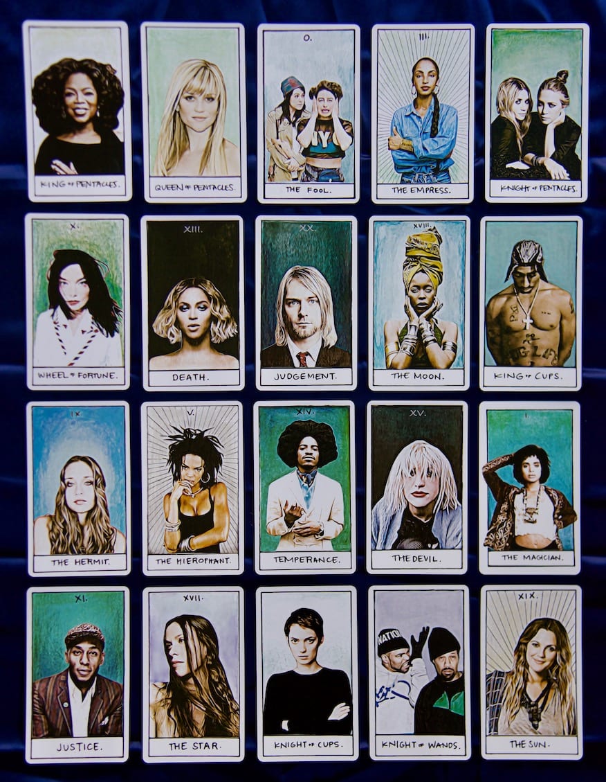 The first time I wandered in I saw a tarot card featuring André 3000’s face [representing ‘Temperance”] so I bought the whole deck. It was part of a pop-culture-inspired tarot deck called “The Illest Tarot,” which features people like Kurt Cobain, Björk, and Erykah Badu. That’s an image I took of my favorite cards, above. So cool, right?