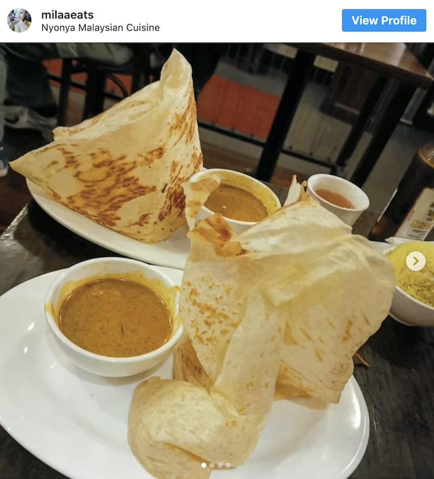 Nyonya is known for its rich, buttery roti canai, a signature Malaysian dish. || Image via Instagram/ @milaaeats