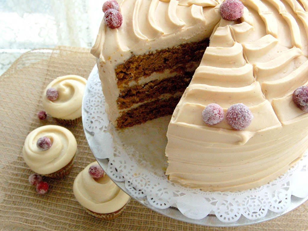 Here, you’ll find cakes that are perfectly imperfect, in lovely epicurean flavors like Lemon Olive Oil Cake with Lavender Swiss Meringue Buttercream– a foodie favorite– or Poached Pear and Raspberry Almond Cake with Brown Butter Maple Buttercream, a seasonal star.