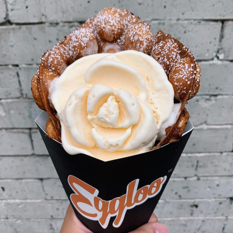 Eggloo is a tiny little shop without much seating, but that’s okay because when the weather is nice, there is nothing better than taking your ice-cream-stuffed-waffle across the street to sit on a park bench and watch the elders play cards and practice Tai Chi. It’s such a unique community experience.
