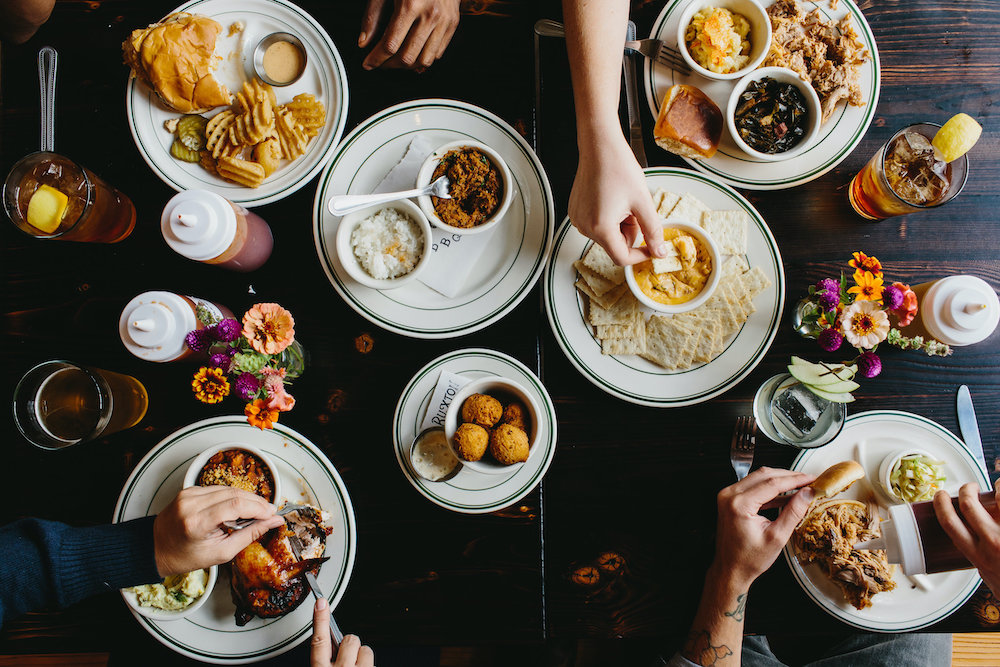For the classic omnivorous experience, order the sweet tea roasted chicken and a bunch of delicious sides. The deviled eggs here are also fabulous— as is their fried okra. For dessert, you can’t go wrong with the luscious peanut butter chocolate pie with salted pretzel topping. (<— Definitely order that if/when it’s available!)