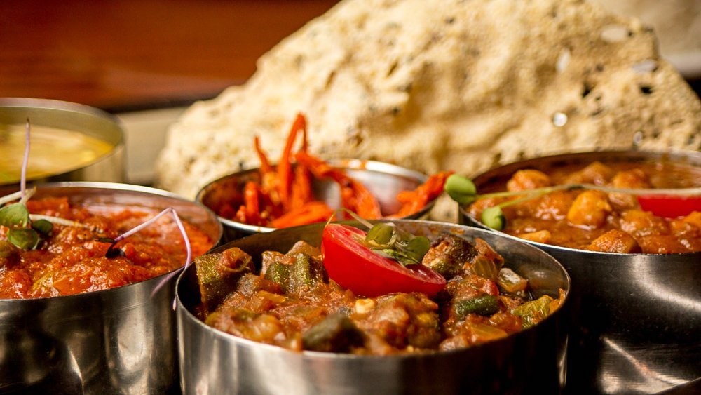 The restaurant also makes delicious cilantro and tamarind chutneys. These are best mixed and used as a dipping sauce for their crunchy poppam (a delicious, fast appetizer). Vegans and vegetarians will also love incorporating them into their generous thali plates.