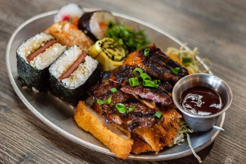 Da Kitchen also serves a “Notorious B.I.G.” loco moco, which features local hamburger, chili, Portuguese sausage, bacon, eggs, cheese, mushrooms, and SPAM over Hawaiian pork fried rice. (It’s so large that you actually get a prize if you eat it all.)