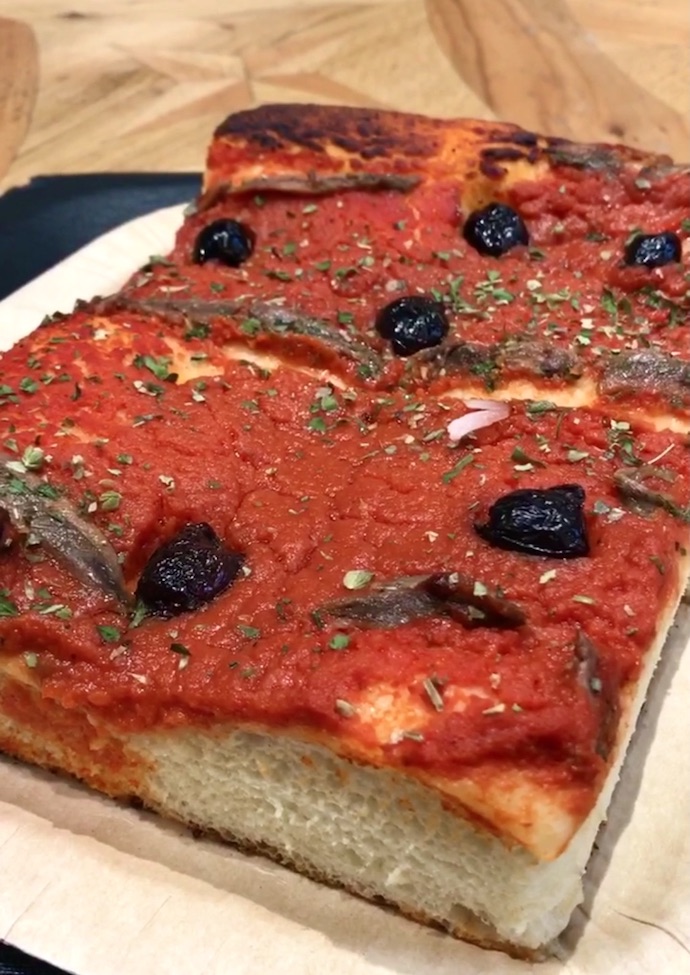 They also have sweet focaccia, sprinkled with toppings like cinnamon-sugar, as well as hearty colazione breakfast sandwiches made on fresh focaccia. (The bakery knows what they do well.)