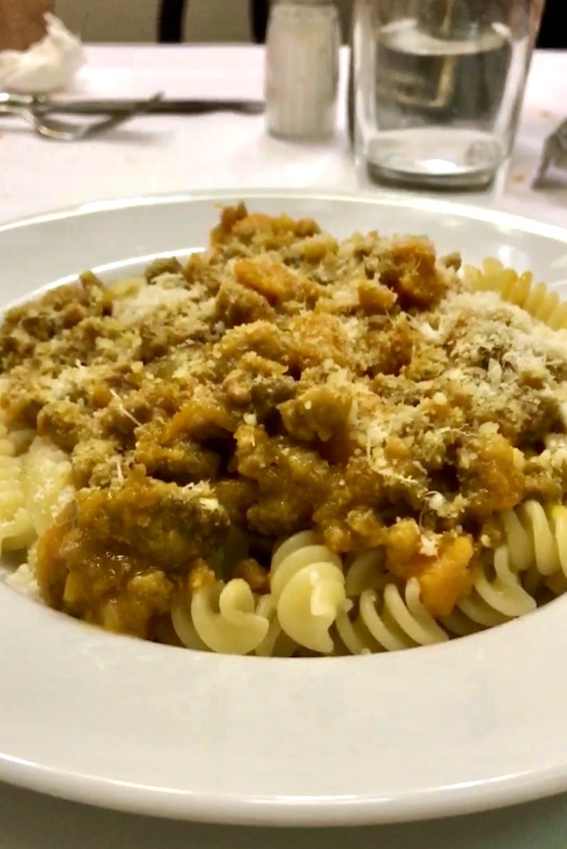 I once had the most incredible pumpkin and meat fusilli at one of their tiny tables. I also had the most amazing anchovy-chicory salad before my meal, which is the best salad I have ever had to this day, and I’ve eaten literally all over the world. (Moreover, I love a good chicory salad, and the dressing on this one was masterful.)