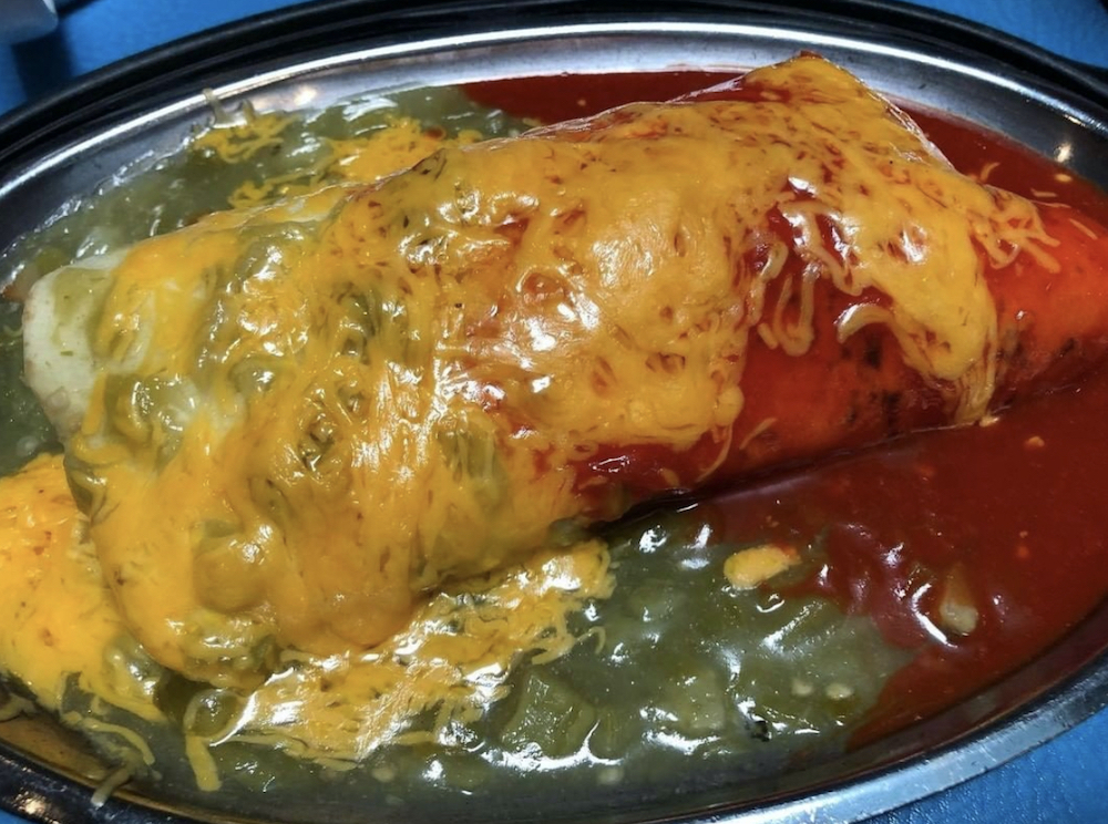 When ordering local dishes in and around Santa Fe, you may be presented with the option of adding “red chile, green chile, or Christmas.” “Christmas” is shorthand for a mix of both red and green chile, which could be added to an enchilada or ladled over a huge breakfast burrito at Tia Sophia’s, for example.