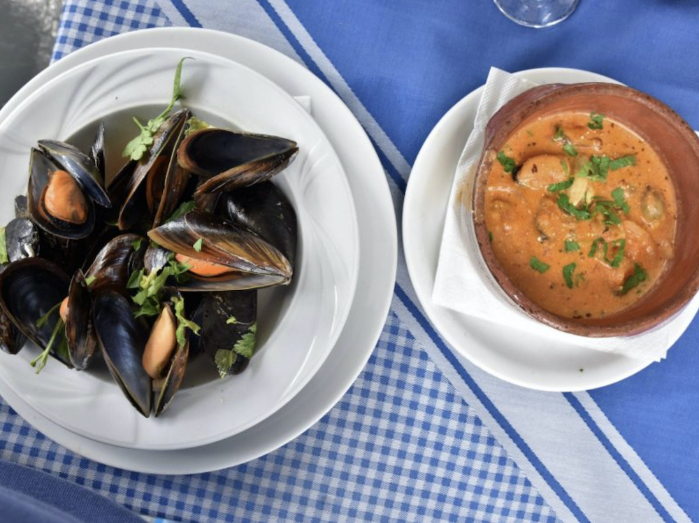 We also love the refreshing appetizers like the tomato balls (an authentic local recipe), the passionfruit-marinated ceviche-style sea bass, and the Fisherman’s salad (e.g. mixed greens, marinated mussels, shrimp, and squid in a bright citrus vinaigrette).