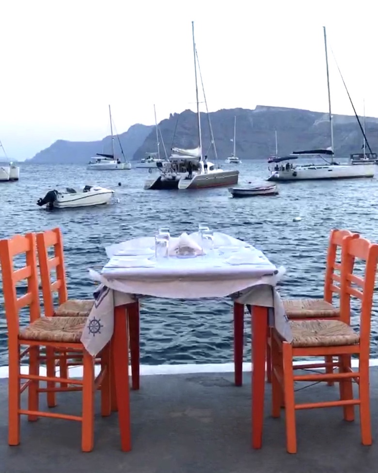 Be advised, however, that because this restaurant is so intimate, you’ll want to make a reservation in advance. They only have a few small tables on their picture-perfect terrace overlooking the caldera.