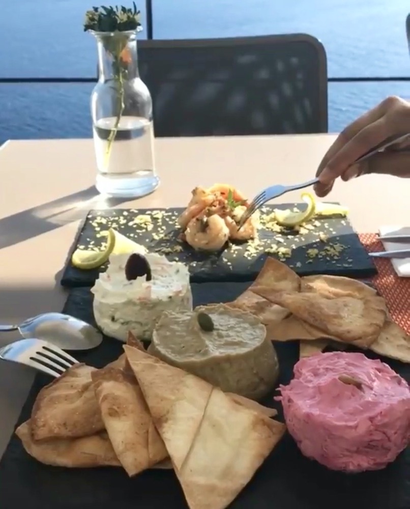 This shrimp + mezze dip combo is my single favorite thing to eat on the island; both items will have you licking the plate!