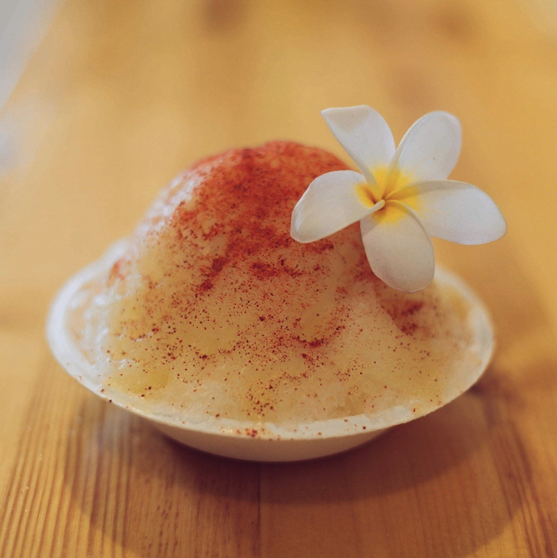 For a classic pairing, order vanilla ice cream with pineapple shave ice sprinkled with sweet-but-tart li hing mui powder, a local Asian-inspired delicacy. Topped with local plumeria (which, yes, is edible) it’s a beautiful twist on this classic Hawaiian dessert.
