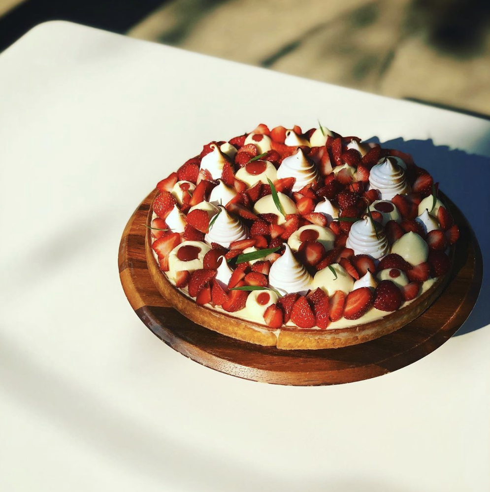 The above picture is of their strawberry jam + rhubarb frangipane tart topped with creme fraiche diplomat, toasted meringue, tarragon, and fresh Michigan strawberries. It’s a light, refreshing twist on a classic summer birthday cake– and the meringue makes a perfect stand for candles.