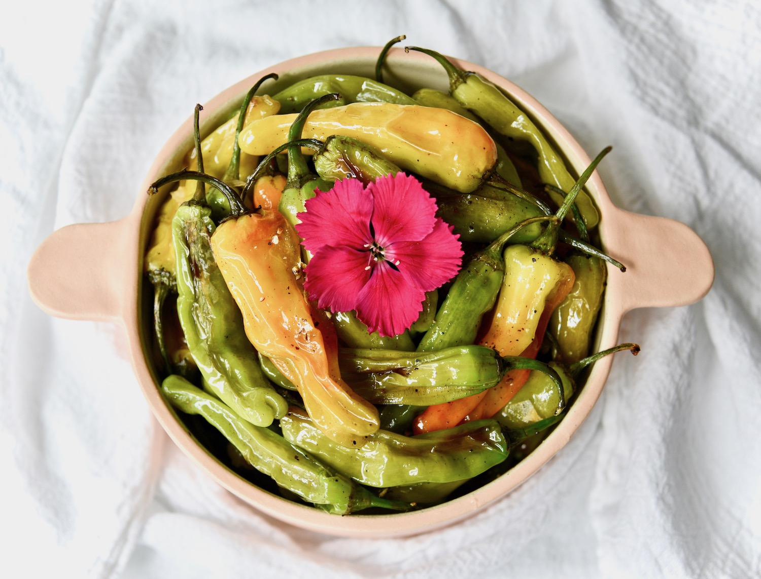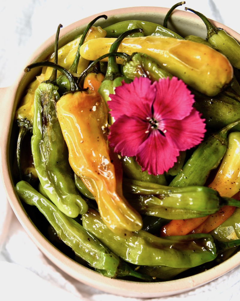 This shishito peppers recipe is part of a series of recipes for aging gracefully. Discover more longevity food recipes– like Vegan Pine Pollen Pesto, Persian Pesto Frittata, or Easy Baked Pears with Honey— by visiting our Mood Recipes section.