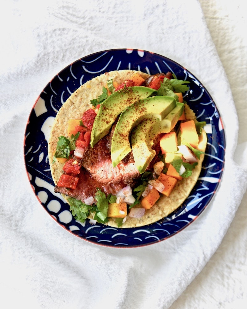 These delicious steak tacos are so easy, colorful, nutritious, and they present beautifully. They make a great early summer/early Fall meal for when the weather is crisp and you want to eat something fresh and seasonal.