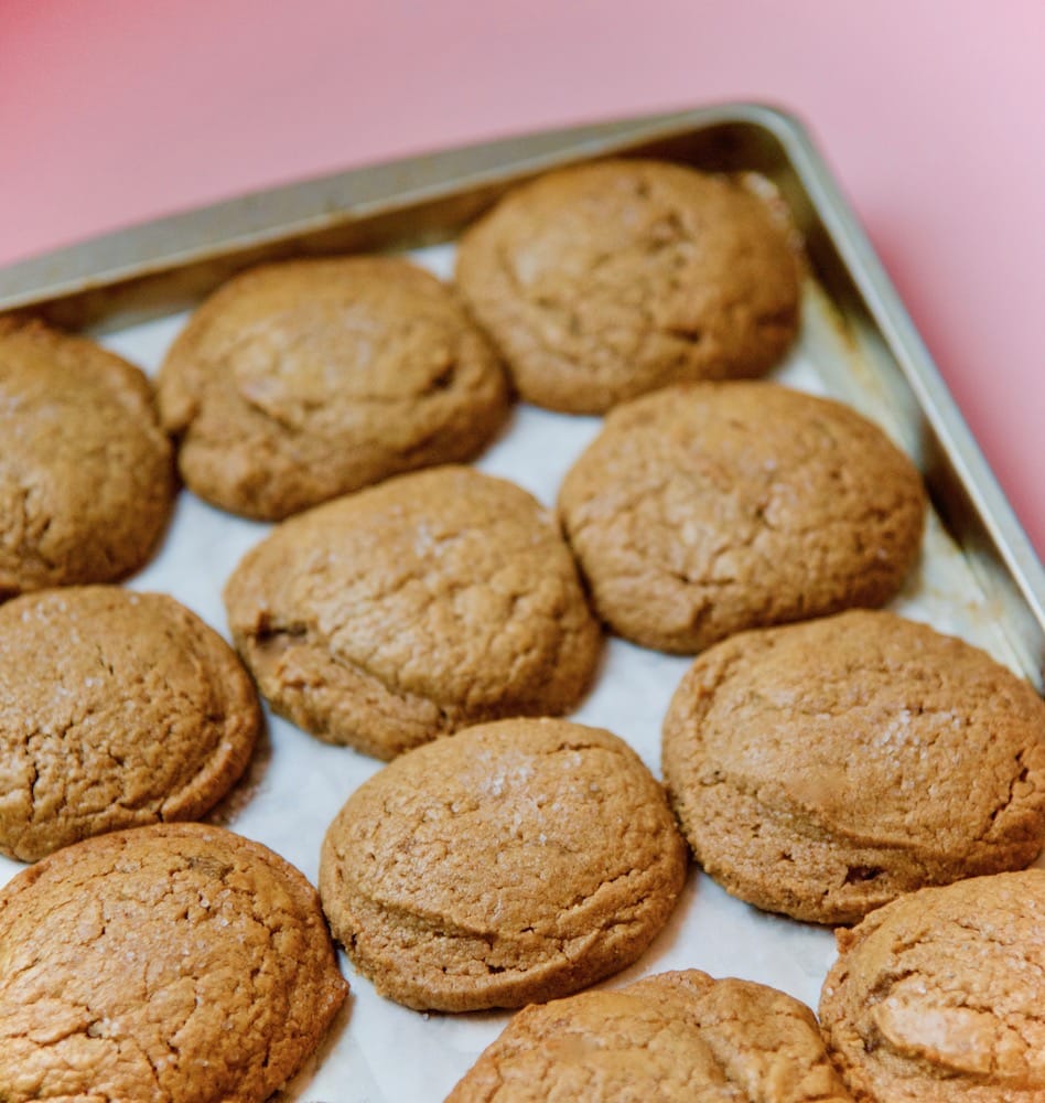 - Optional: Refrigerate cookie dough for ~30 minutes or more to ensure that cookies have a nice, round domed shape.