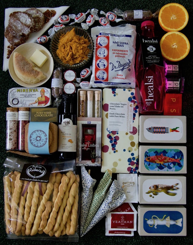 Also be sure look for local orange-infused olive oil, sardines, sea salt from Algarve, port-wine infused chocolate, ginjinha (a bright red Portuguese liquor made by infusing ginja berries in alcohol), local sea salt, healsi brand silica water, dried fig pâté (sort of like a chocolate truffle but made of fig paste), and fresh loquats (available in the summer– look for them at local markets).