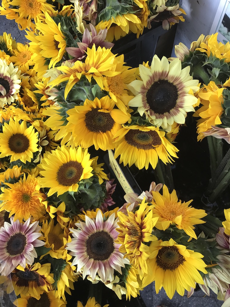 In the Fall, they also “pedal” the most cheerful dahlia, basil, sage, gomphrena and scabiosa bouquets around. And in the Summer, well– you’ll have your pick of litter, with dozens of local poppies, sunflowers, allium, and other “dirt candy” coming into bloom in a variety of colors all at once.