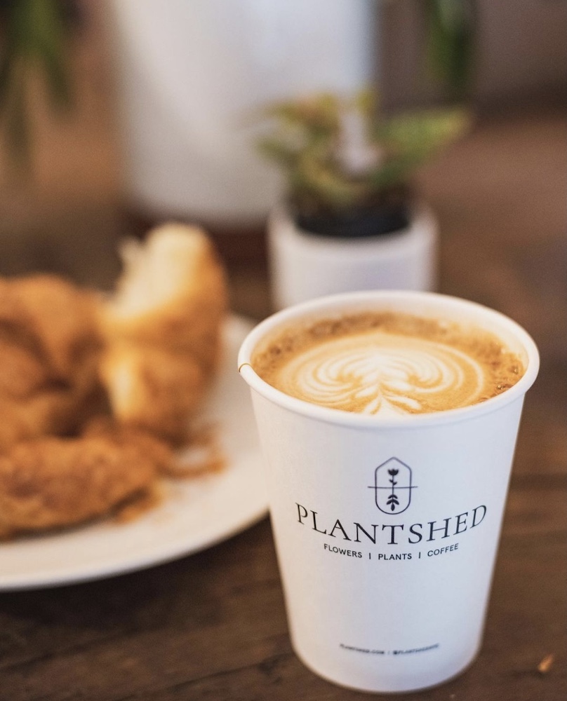 ^ The cafe serves local Partners Coffee and locally-made croissants, two real draws. I love the bright pink rose lattes and refreshing iced coffee. But mostly, I love being able to shop for pothos plants and flowers at the same time.
