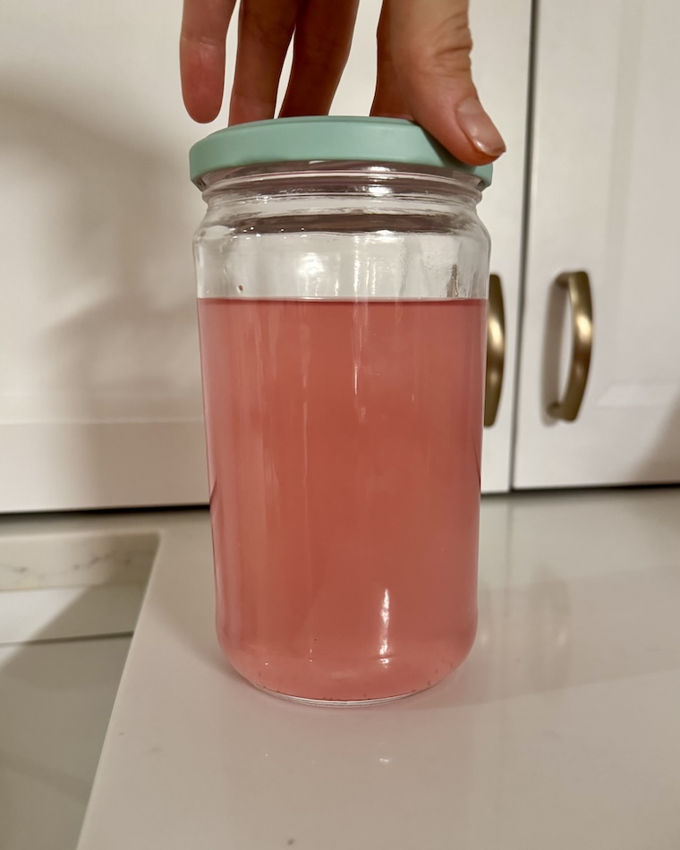redbud tea made from steeping fresh redbud flowers in boiling water may or may not turn pink when you let it steep overnight. Sometimes, it doesn’t. If this is you, never fear! Simply add lemon juice to the solution and the water will change color as the naturally-occuring anthocyanins in the redbud petals react with the lower pH. It feels like a magic trick, which is why some people affectionately call redbud lemonade “color changing lemonade” (and by “some people” I mean me).