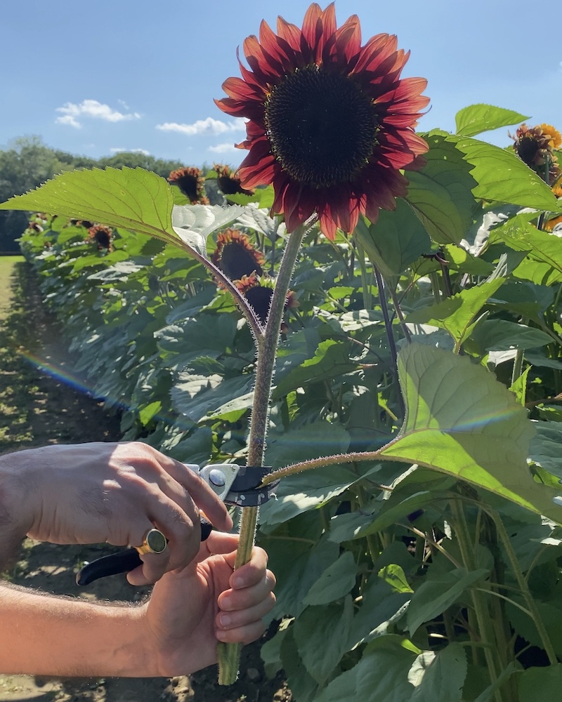 Watch their videos on how to properly harvest sunflowers so that you don’t harm the plant, here. (Ideally, you want the flowers to be a little more closed so that they will last longer at home in the vase. You also want to trim off excess leaves.)