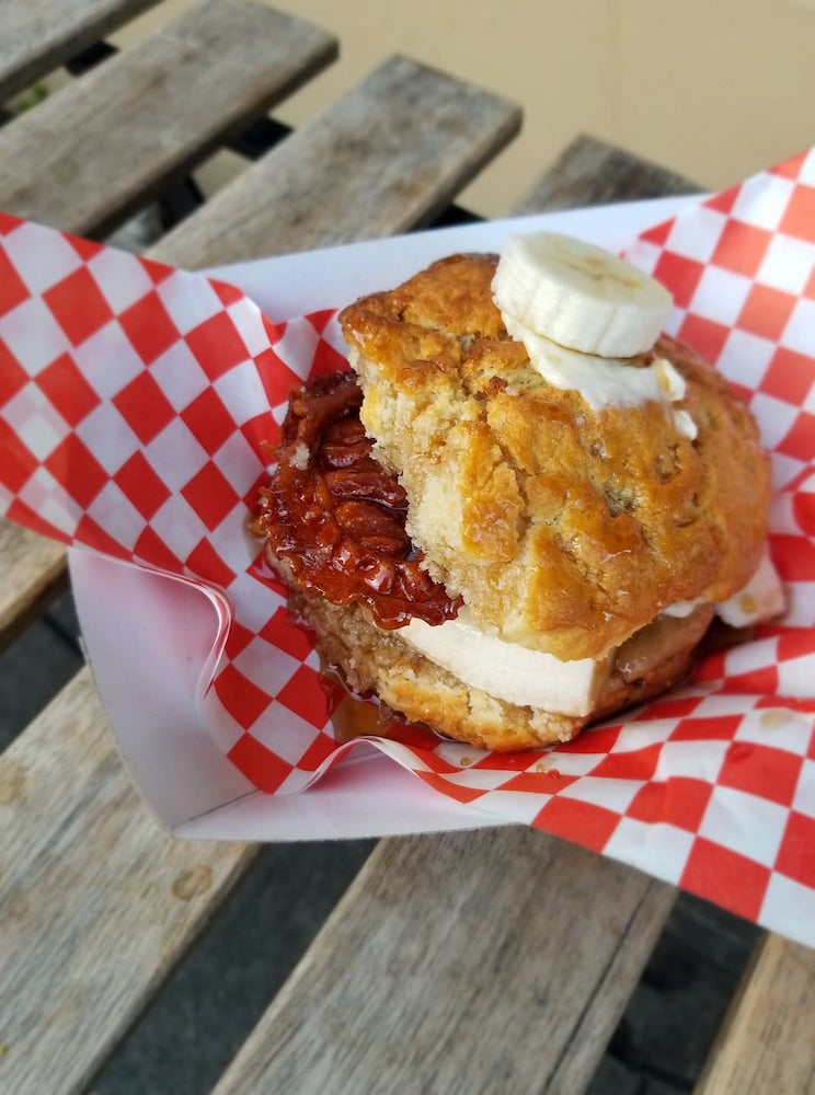 Food-wise, opt for a biscuit “bitchwitch” with egg and cheese or egg, cheese, and bacon for the quintessential experience. They also have sausage, SPAM, and veggie sausage options, which will likely be served to you with a welcome dose of rockabilly sass (this place is a whole mood).