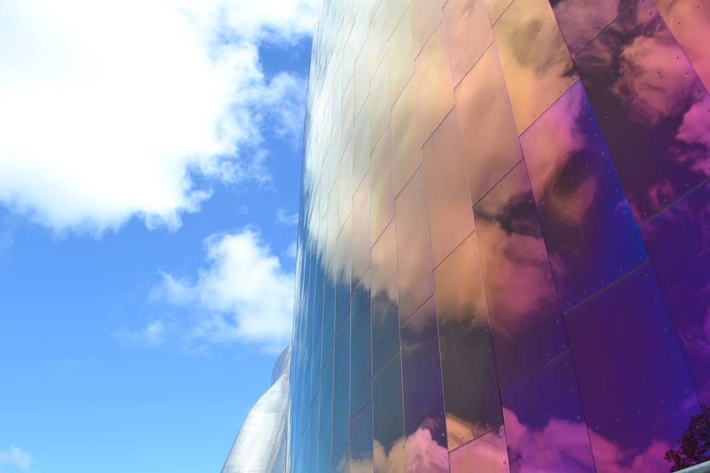 The Museum of Pop Culture— or MoPOP, for short– is housed inside one of Seattle’s most futuristic and architecturally-expressive structures. It looks like a cross between the Walt Disney Concert Hall in L.A. and Easter-themed cellophane wrap.