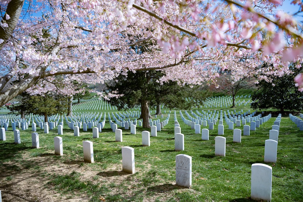 For the best experience, plan to visit in the Spring when the weather is nice and the iconic cherry blossom trees are in bloom. On-site, look for notable graves like Former Presidents, Sports Figures, Supreme Court Justices, and Astronauts.