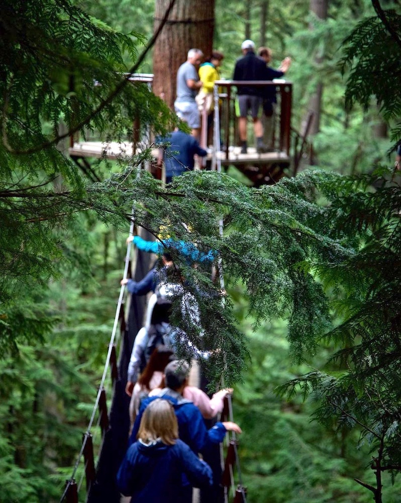 High above the ground, traversing a maze of suspension bridges at Capilano Canyon in North Vancouver. || Image: Molly Beauchemin / G&L Guide to Vancouver, Canada