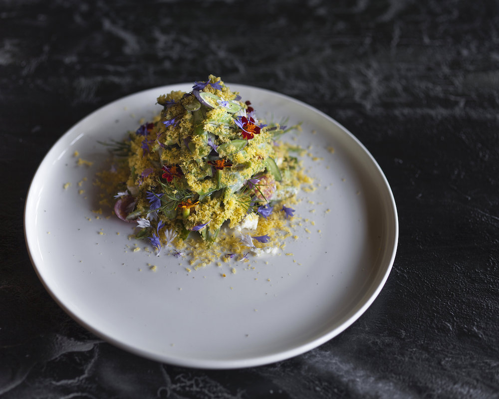 Look out for specialty appetizers like Allium Salad with organic local Walla Walla onion, roasted red Russian garlic + Saskatchewan pinto bean paté, onion skin gelée, and za’atar spiced potato chips. Or, opt for a more robust entrée, like Beer Battered Halloumi with zucchini + potato pancake, smashed peas, mint yogurt, and lemon balm from the Acorn’s own garden.