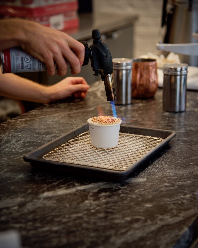 The making of a crème brûlée crusted cup at Mister Artisan Ice Cream. || Image: Molly Beauchemin / G&L Guide to Vancouver, Canada