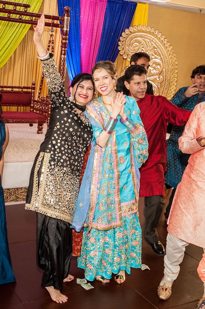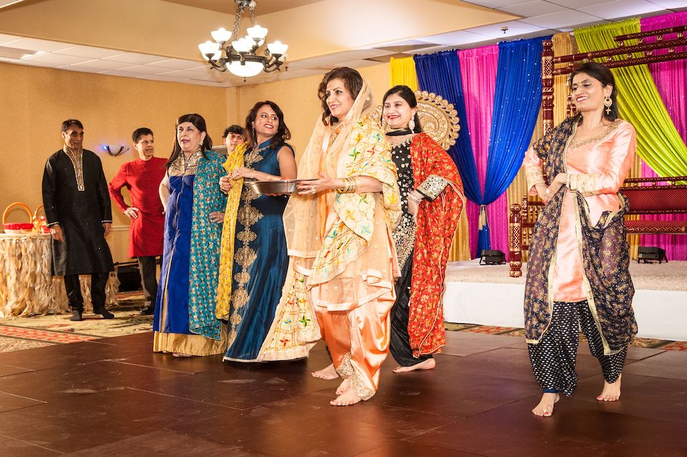 On the dance floor, expect to see North Indian Bhangra and Gidda, two distinct styles of dance that hail from Punjab. Women and men may take off their shoes for this, as is customary.