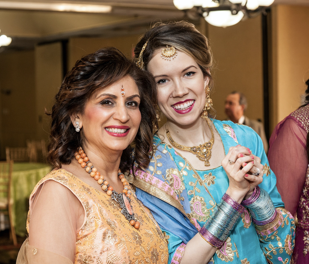 Indian women will wear Punjabi suits, often accented with special phulkari dupattas— a beautiful, heavy embroidered scarf-like shawl. (Fortunately, you can now buy them Amazon!) Others may wear traditional saris, salwar kameez, or lenghas. Indian men, meanwhile, typically wear kurtas, Indian vests, or Western-style suits.